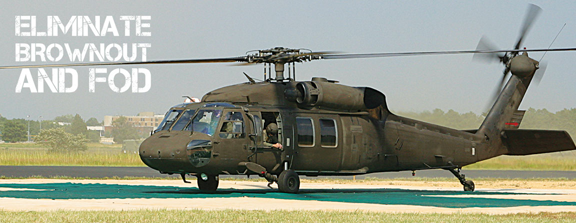 The CGear Tactical Helimat has been designed and manufactured to quickly and simply solve the problem of ‘Brownout’ on helicopter-landing zones.