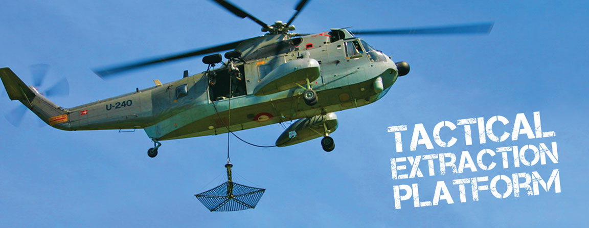 Originally designed to be used for deployment by helicopters, the Tactical Extraction Platform is now in service in marine rescue and on oil and gas platforms for transference of personnel and cargo.